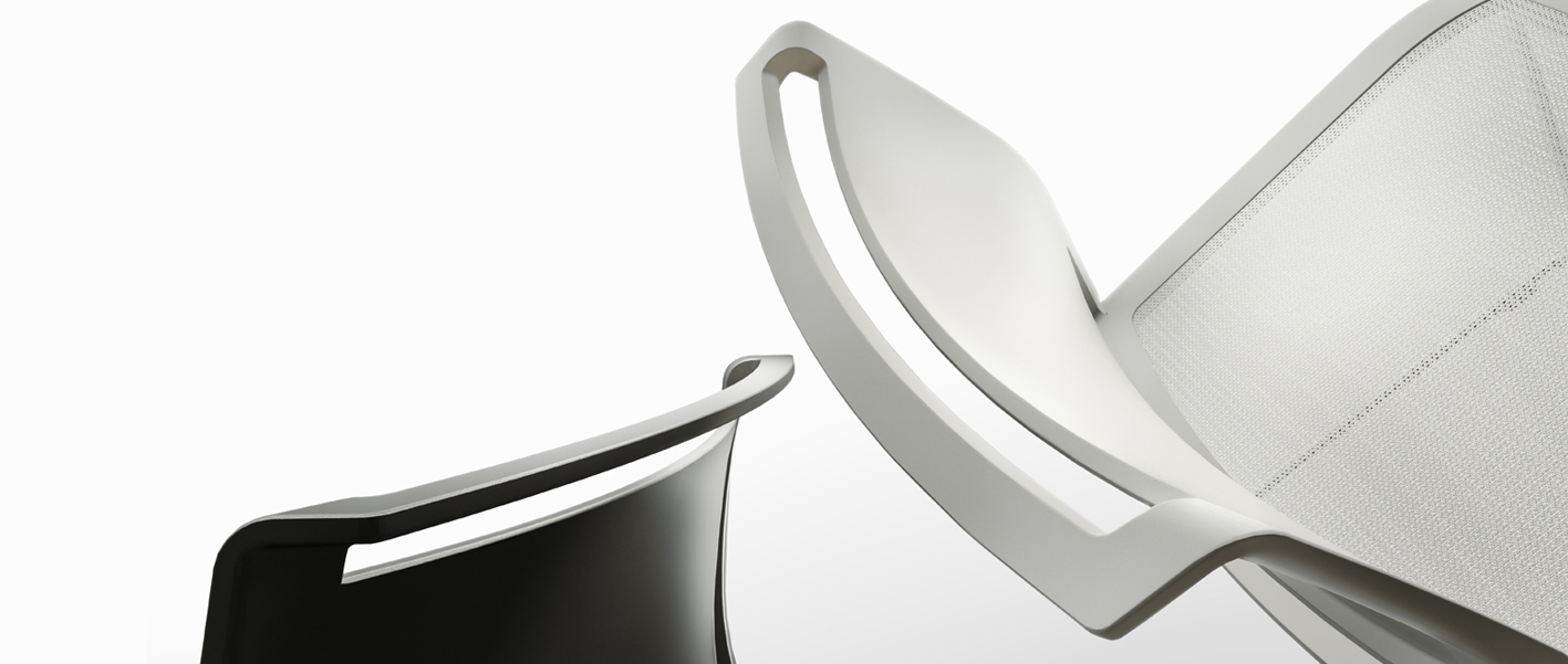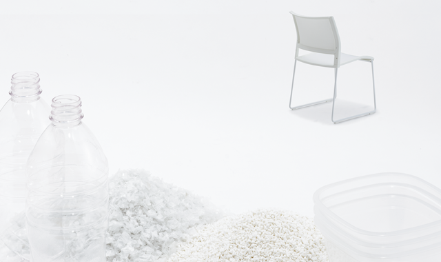 All resin components are made from 100% recycled polypropylene pre-consumer waste by-products. The mesh texture is fashioned from 100% recycled fiber from reclaimed PET bottles. All components are 100% recyclable. The simple construction enables disassembly for recycling of each material type.