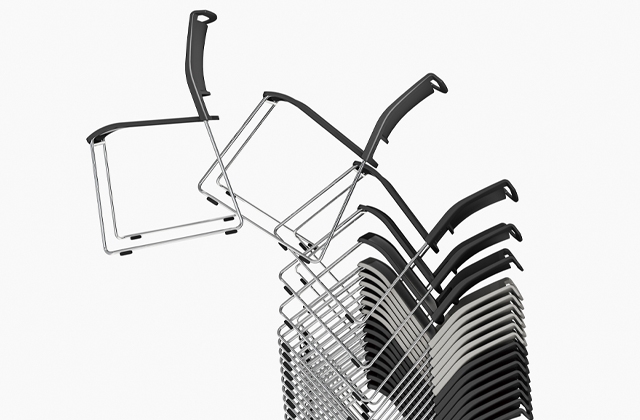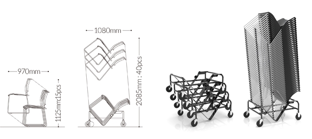 The innovative lightness makes it easy to stack up to 40pcs on the dolly and 15pcs on the floor. (SX)
