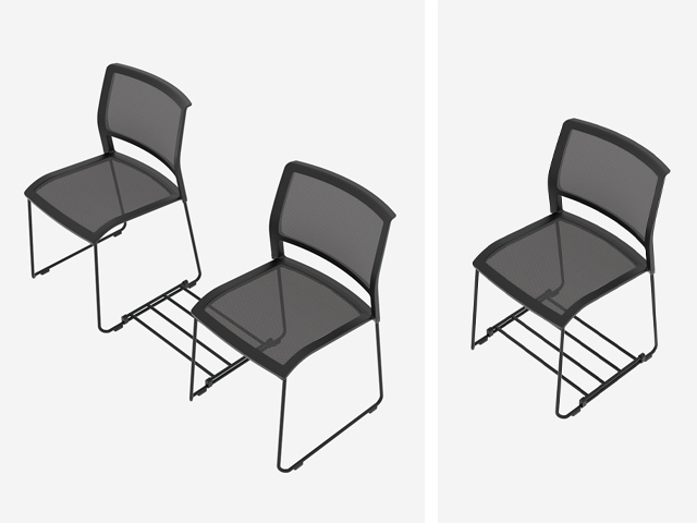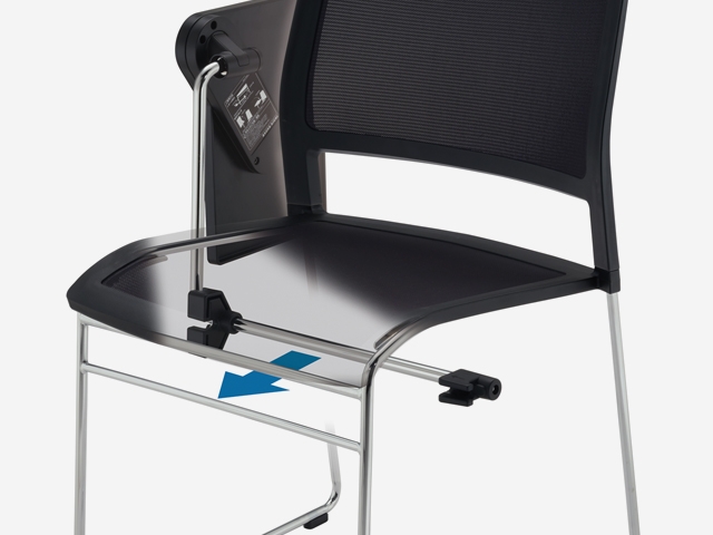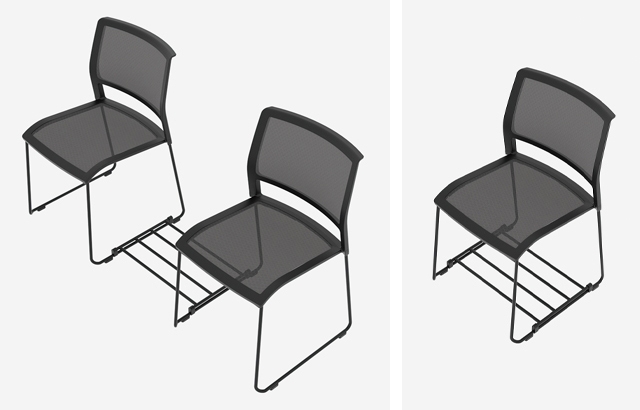 A upholstered seat cushion is an option. The stacking bumpers protect the seat surfaces while retaining the high-density stacking capability.