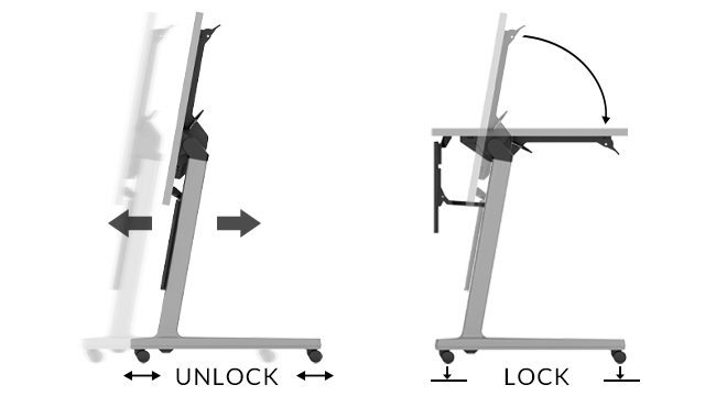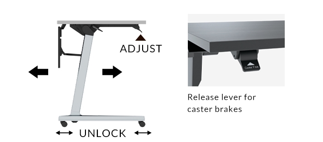 Even after setting the table, you can release locking casters quickly with the lever under the table. It is very helpful for minor adjustments after layout change.