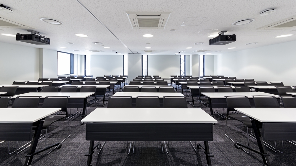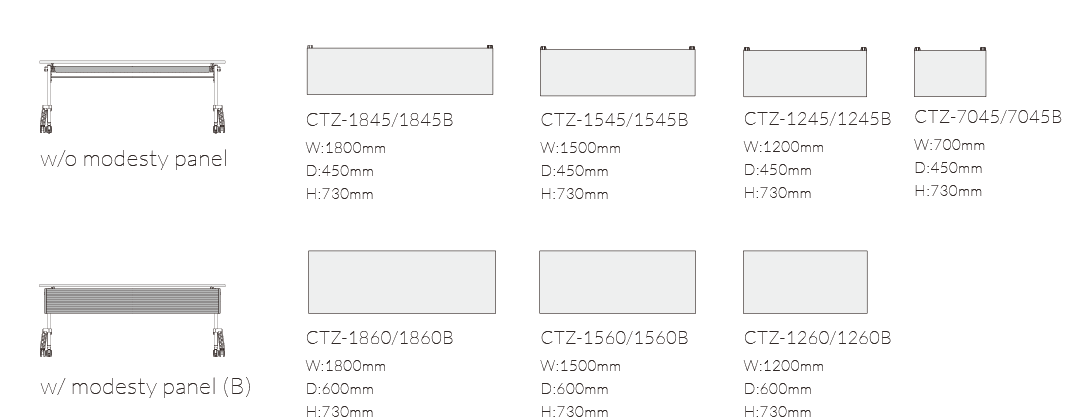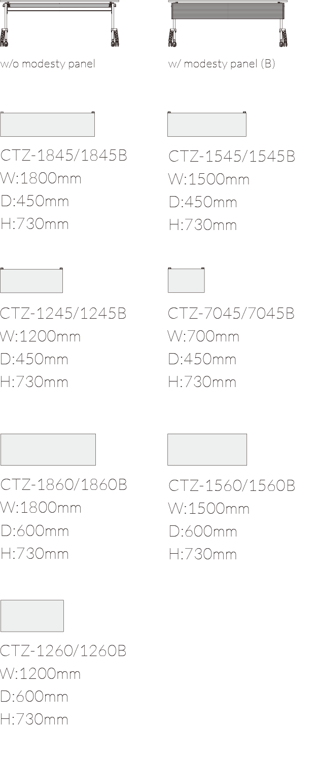 This operating system enables stoppers within the front caster to rise and lower automatically with the movement of the tabletop. This safety device prevents accidents due to forgetting to lock the casters.