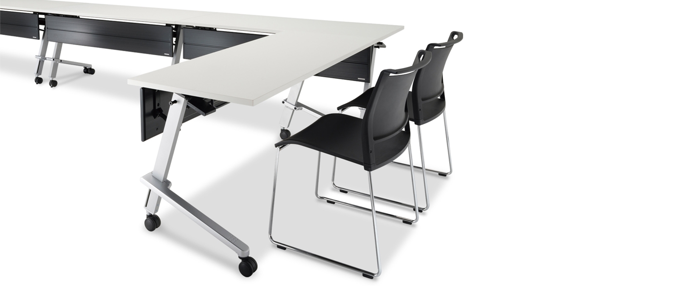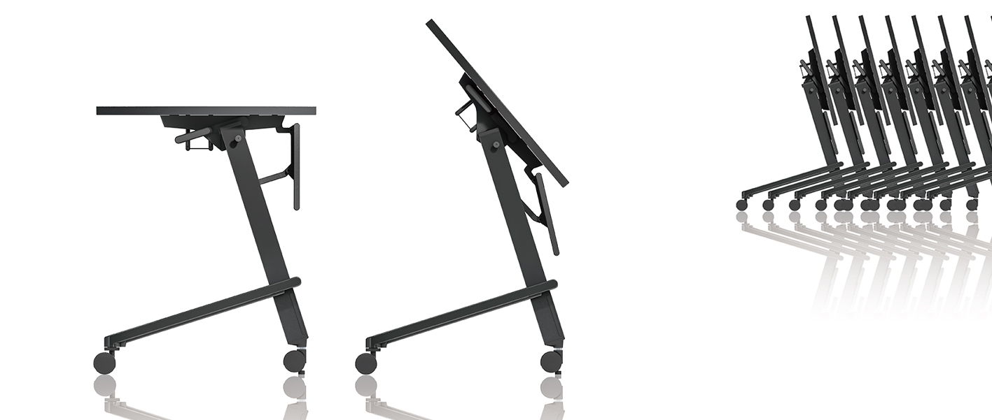 This parallel nesting design enables the table legs to stack tightly together in a beautiful and compact way.