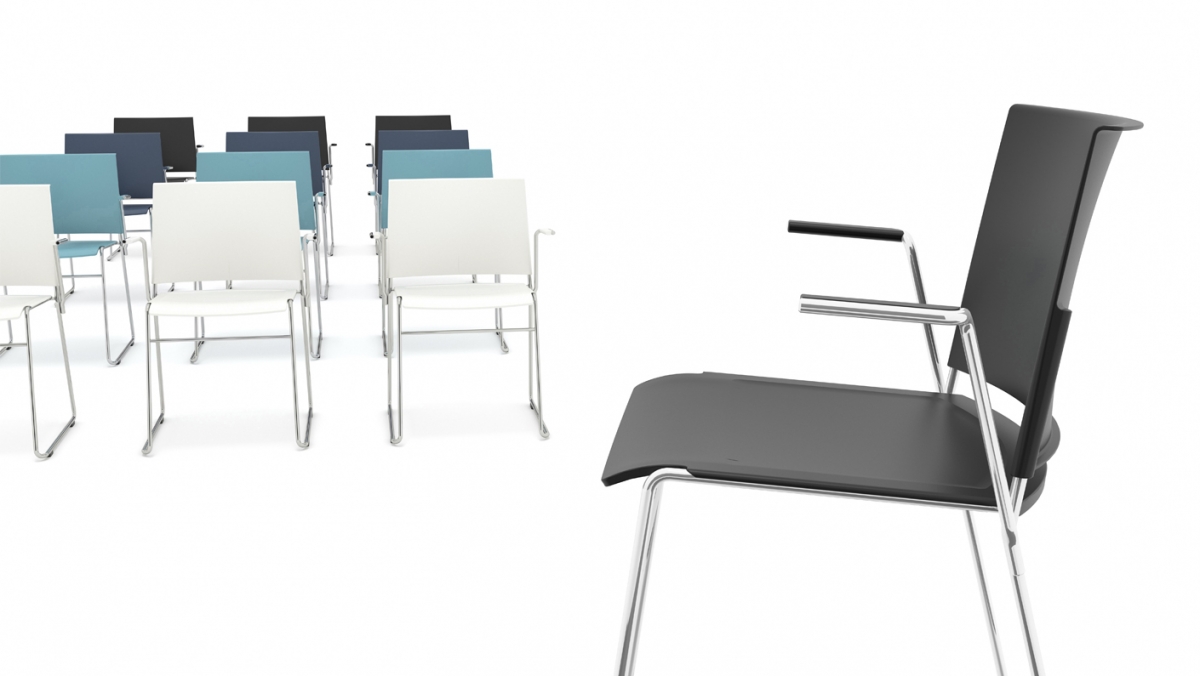 エラストマー樹脂で被覆された背と座は人の動きに追従し、メンテナンス性に優れています。落ち着いたマットな質感と、スチールフレームのコンビネーションが現代的で洗練された印象を与えます。