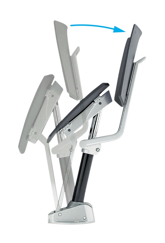 座面に体重をあずけると、ゆっくり座が沈み込みます。高性能ガススプリングは、体重を支える十分な強度と適度な弾性があり、離席時も静かに元に戻ります。また、座のスライドアップ機構は、使用者が手を挟んだり、衣服を巻き込んだりする危険性がありません。