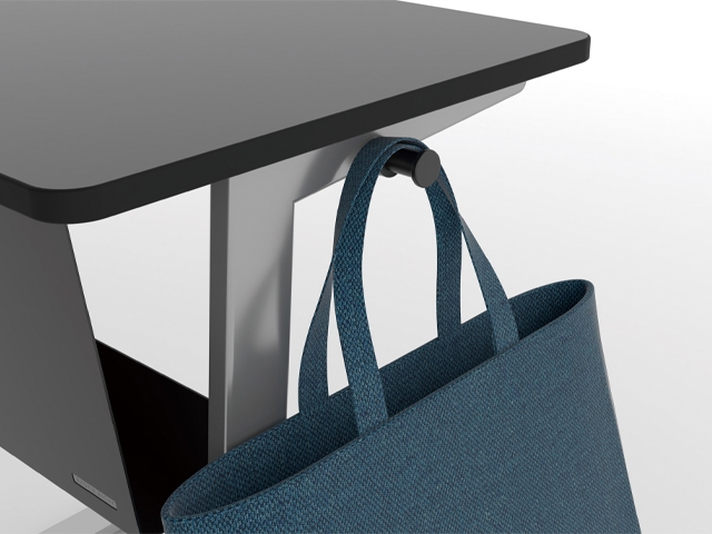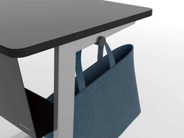 フックは天板受けの外側・内側に可動するスライド式なので荷物を掛ける位置を選択できます。(日本国特許出願中)