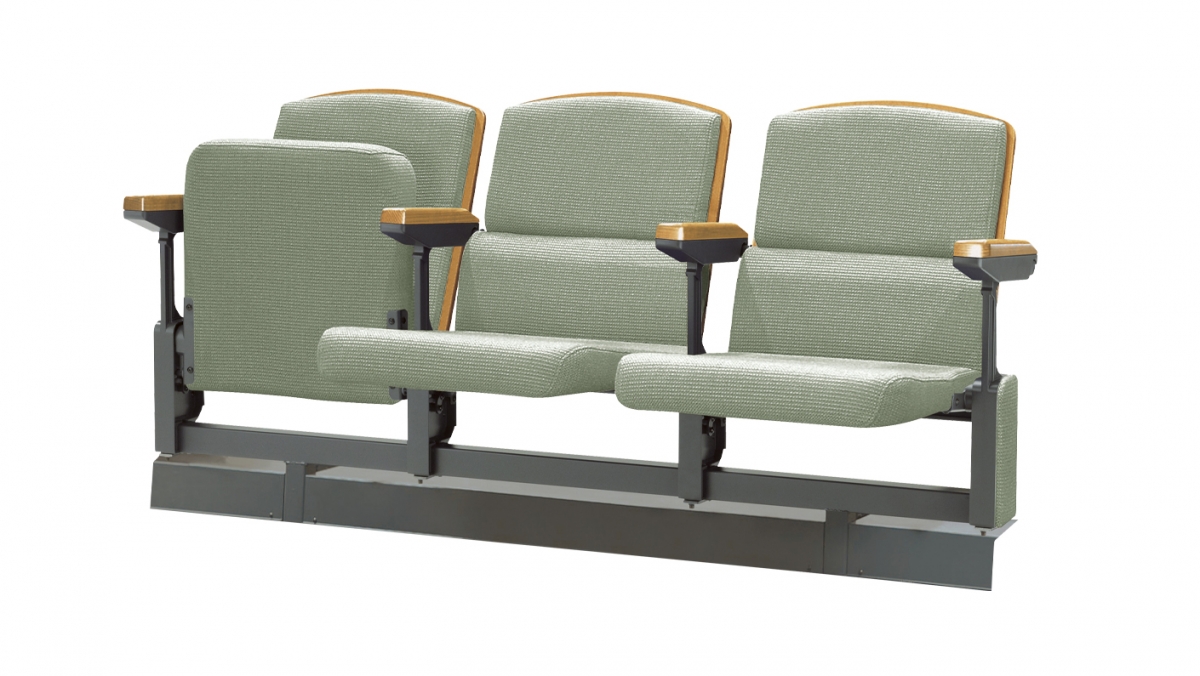 axona AICHIは移動観覧席を初め、床固定席、スタッキングチェアのような可動席など、ホール内の客席全体の意匠を、同じイメージで統一できるアイテムを取り揃えています。