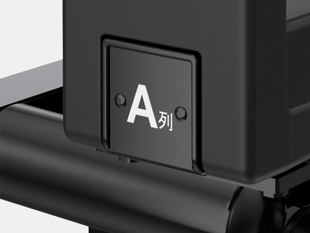 2〜4人単位で連結されているイスの背もたれを持って、上に引き起こすだけでセットできます。イス本体は装置内にあるばねのアシストにより軽い力で持ち上げられ、所定の位置まで起こすと自動でロックされます。