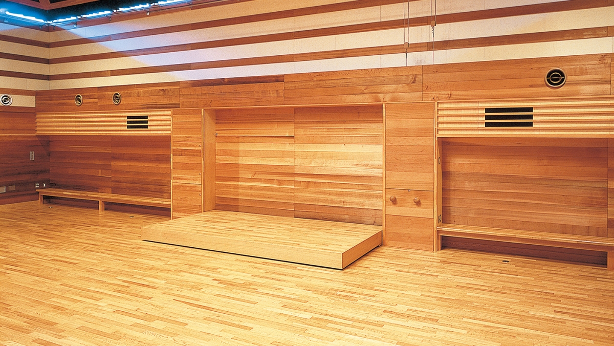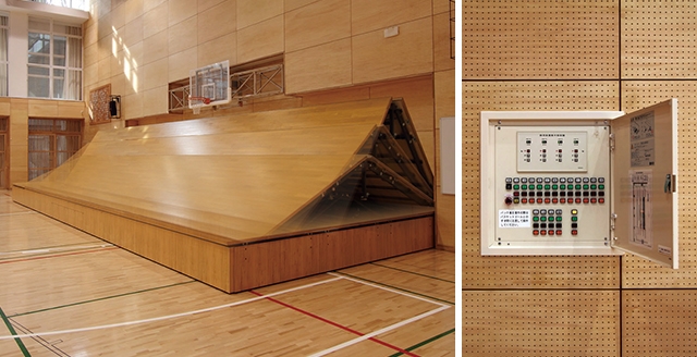 アイステージWF は、ボタン1つで設置、収納ができる電動ステージです。ホールや体育館の多目的な利用を可能にでき、活用目的が広がります。従来、仮設ステージはその都度組立てられていましたが、アイステージWF の場合は仮設ステージと比較して設置・収納に要する時間と手間を大幅に短縮できます。また、既存の建築にも容易に取り付けができ講演会、発表の場、各種ショーなど本格的な催しに対応、地域文化の活性化を図ることができます。