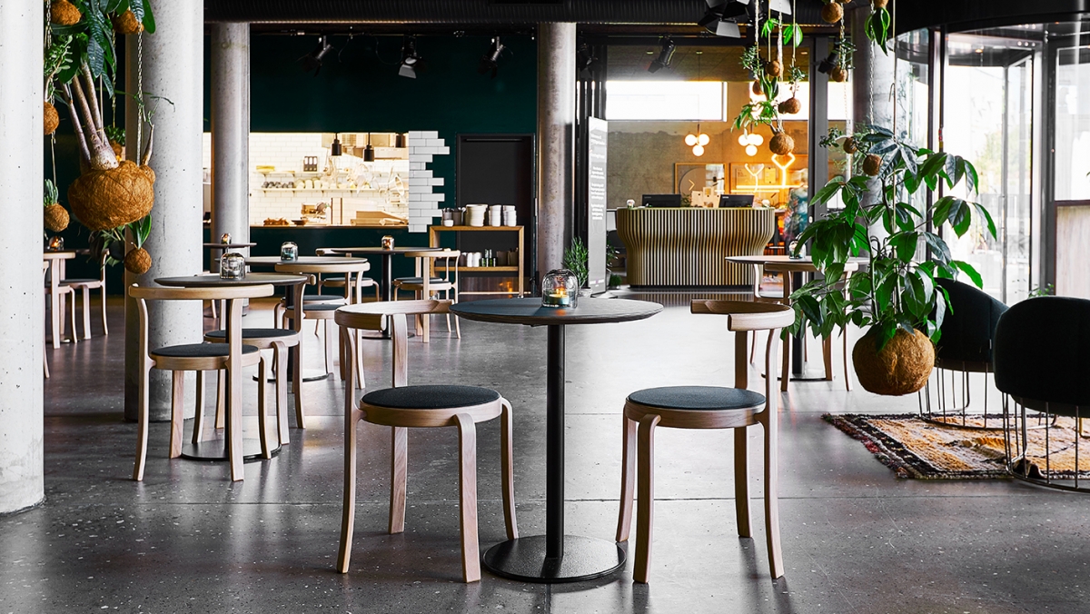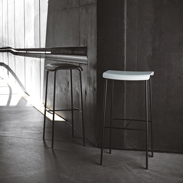 オフィス、レストラン、バー、カフェ、食堂などで使われているハイテーブルやハイカウンターに合わせた、座面のゆるやかなカーブが自然と身体にフィットするシンプルなデザインのバースツールです。2種類の高さからお選びいただけます。