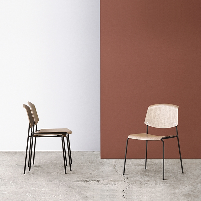 SESSIONはスカンジナビアの美学であるミニマルなフォルムを追求したスタッキングチェアです。座フレーム内とフレーム上部で厚みの異なる2層構造のシートパッドにより、スリムなデザインでありながら快適な座り心地を実現しています。また、脱着可能なシートパッドは収納性とメンテナンス性に優れています。