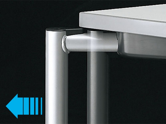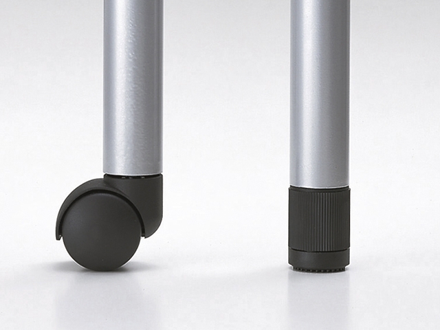片側2個の脚端は高さ調節が可能なアジャスター付なので安定した設置となります。またキャスターロックの必要もなく、手間がかかりません。