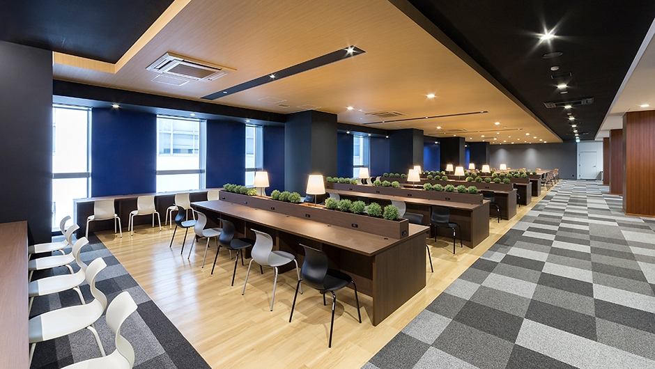 3階 ラーニングスクエア(個人学習ゾーン)/イス:プロ、ビッグテーブル(照明・花器・ACコンセント)、カウンターテーブル