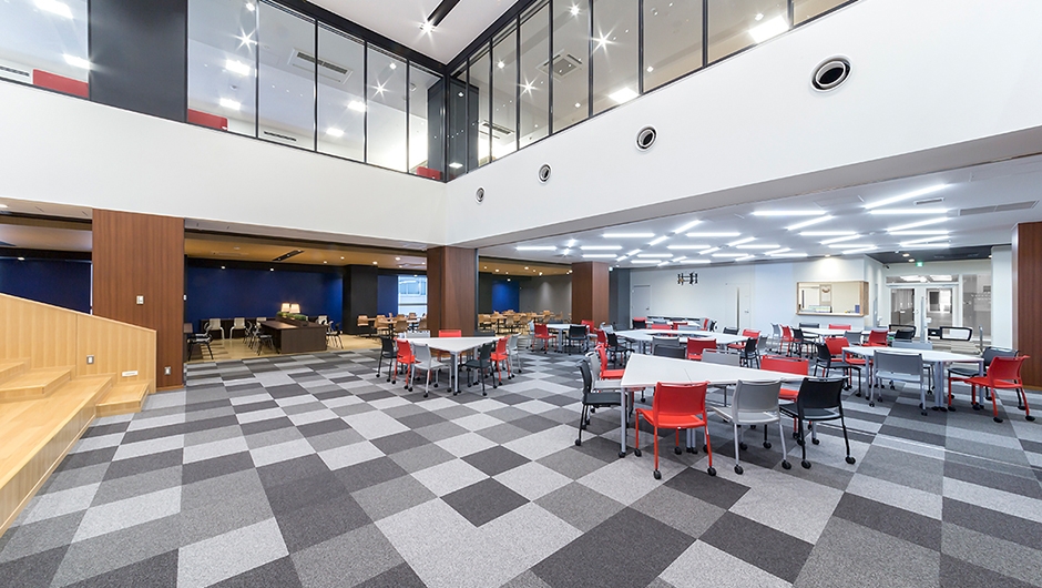 地上12階建ての教育研究棟には、最新の映像機器を完備した講義室・実習室のほか、学生の相互学習・交流の推進を図るラーニングスクエア、各種研究・実験施設等、充実した教育研究設備を備えられています。