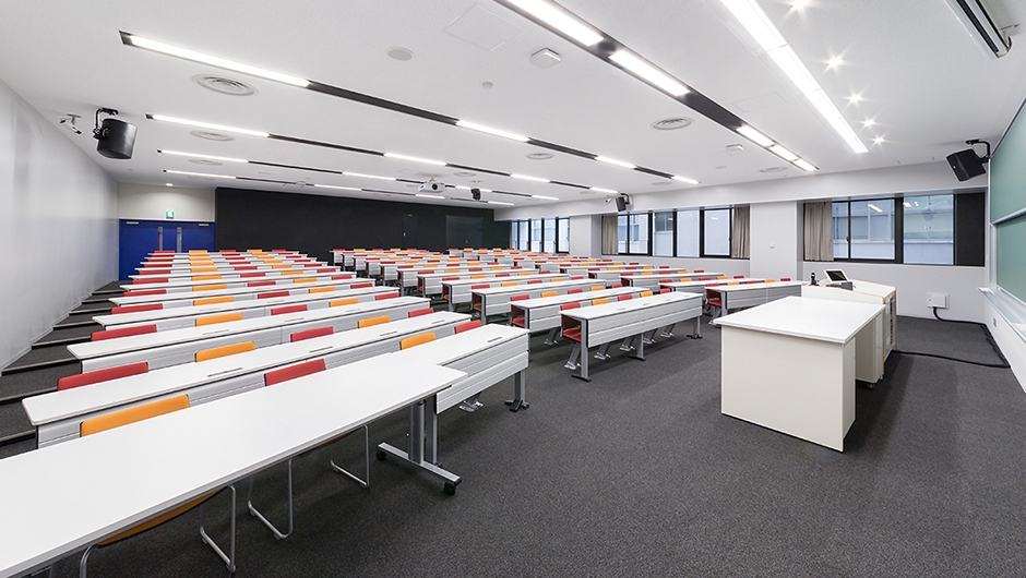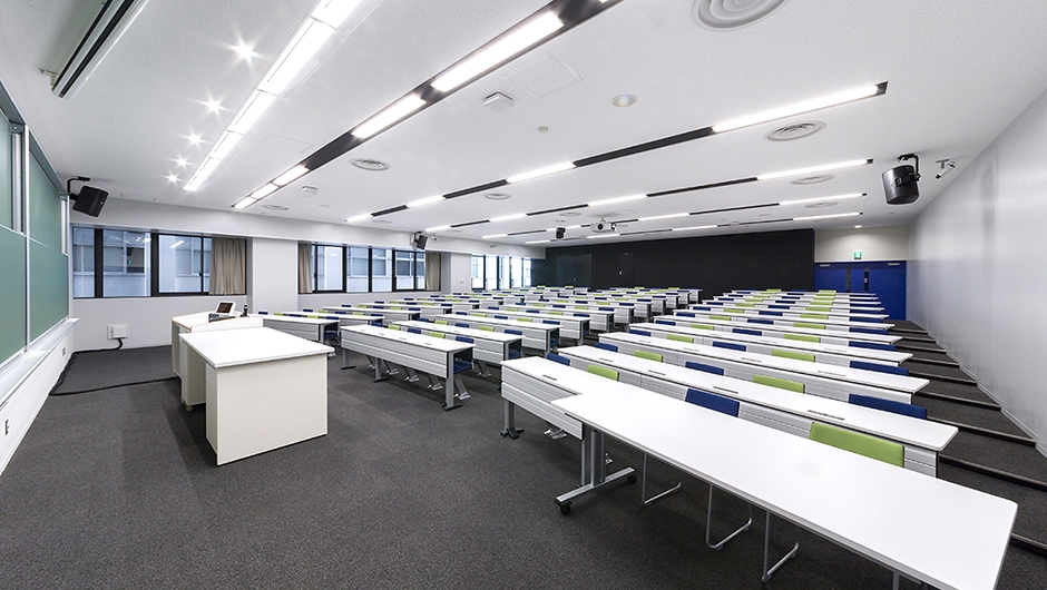 3階 301講義室/講義デスク・イス:SCF-5105、可動イス:SCM-5105、可動デスク 固定席162席・可動席2席、教卓