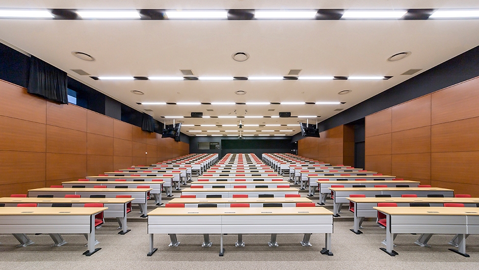 2階 201大講義室/講義デスク・イス:SCF-5105、可動イス:SCM-5105、可動デスク 固定席292席・可動席2席