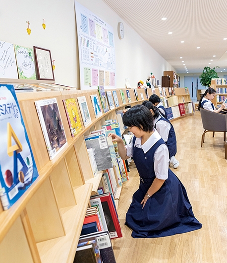 2018年2月に完成した「ノートルダムホール」の3階に、中高生共用の新図書館が誕生しました。スペースが限られた旧第一・第二図書館を一室に整備した新図書館には平湯モデルが採用され、木の温もりがある明るく開放的な空間へと生まれ変わりました。