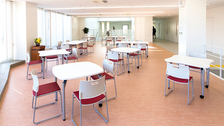増築棟 2階 ホール/イス:ペン特注品、テーブル:DTN