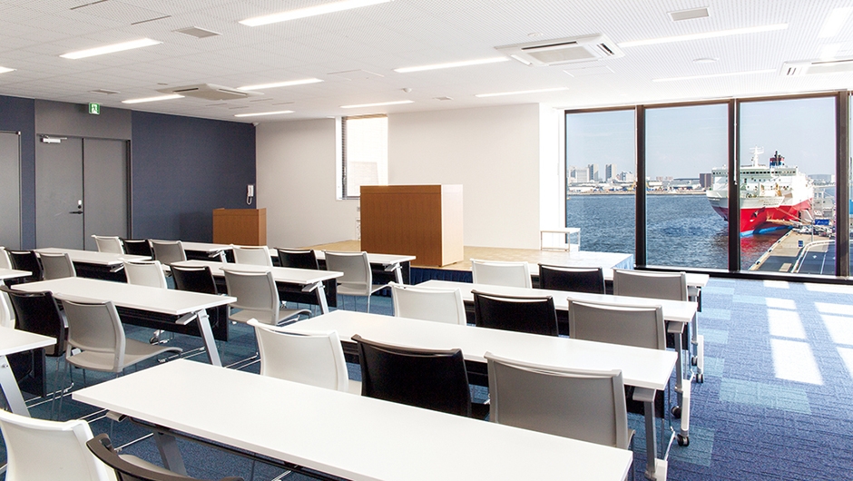 会議室/イス:ティーポ、テーブル:CTZ、ステージ:AIS、演台:LST-30、司会者台:EST-30