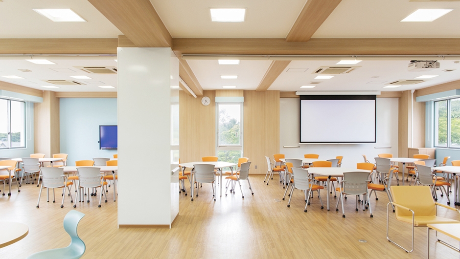 学生ホールのリニューアルが計画され、家具の入替だけでなくAV機器の導入や内装改修まで行なわれました。