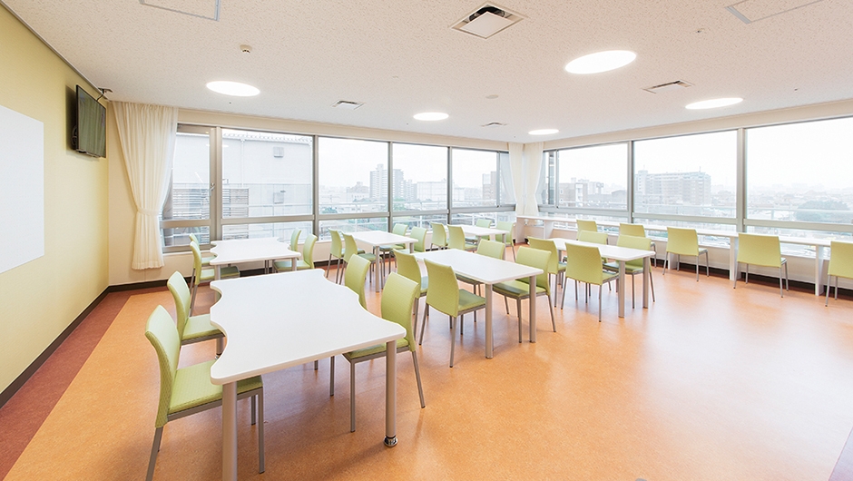 4階 デイルーム/イス、テーブル(一部昇降機能付)、掲示板