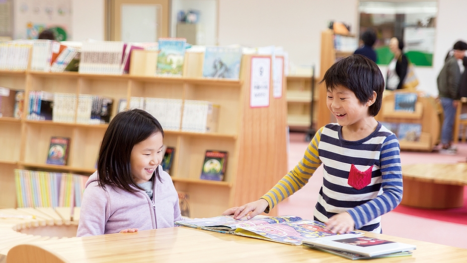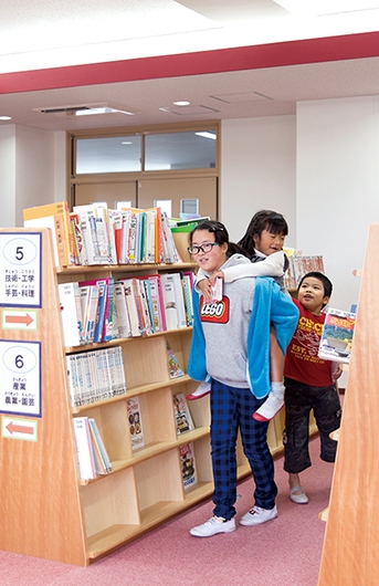 図情報学習センターの図書室には平湯モデルが導入され、入室した瞬間に木の温もりが子どもたちを包み込んでくれます。