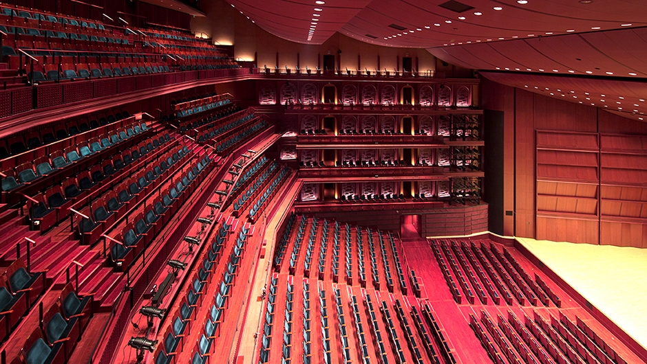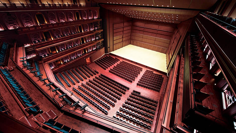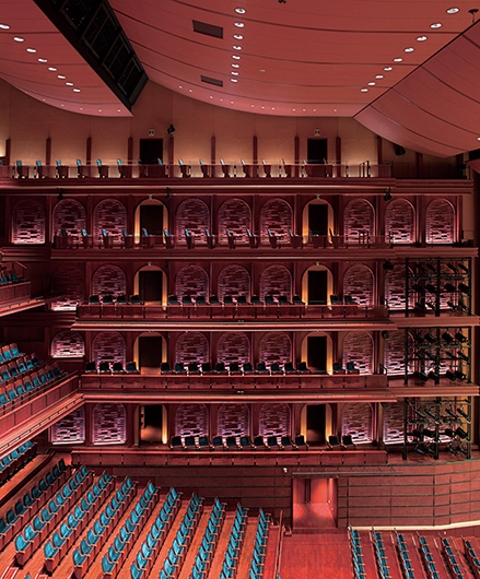 大ホール「ザ・グランドホール」は、音楽を主体としたパフォーミングアーツのための劇場で、コンベンションにも利用されます。約1500席をコンパクトに収めるために、5層のバルコニー席となっています。