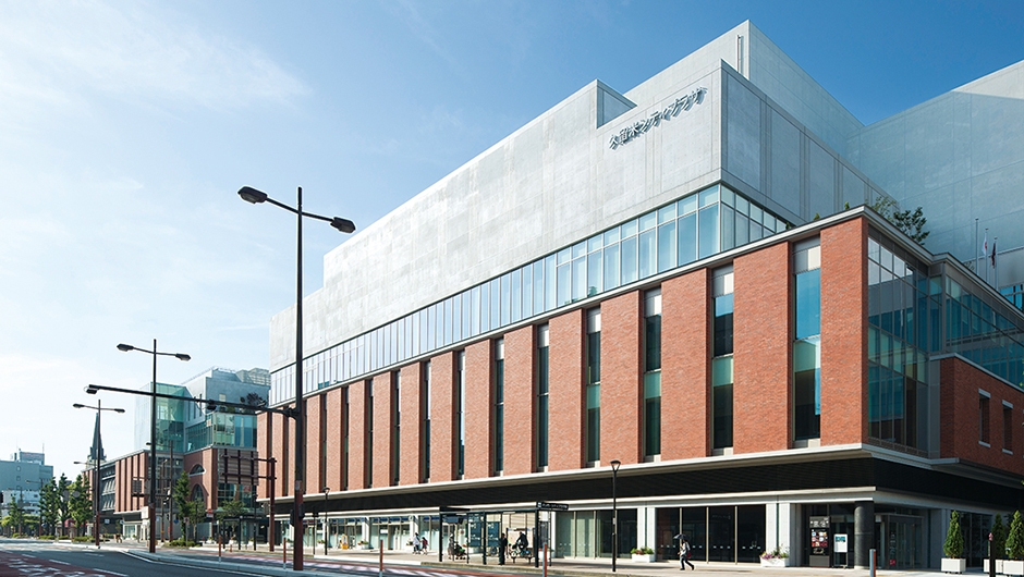 2016年4月にオープンした「久留米シティプラザ」は、中心市街地の賑わいを再興し、これからの文化・芸術を創造する拠点としてつくられました。8番街区に“ホールを中心にしたエリア”を、9番街区に“広場を中心にしたエリア”を設け、2つの街区を“上空連絡通路”で結ぶダイナミックな建築空間をつくり出しています。