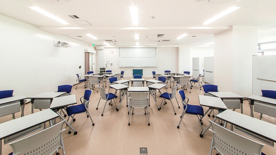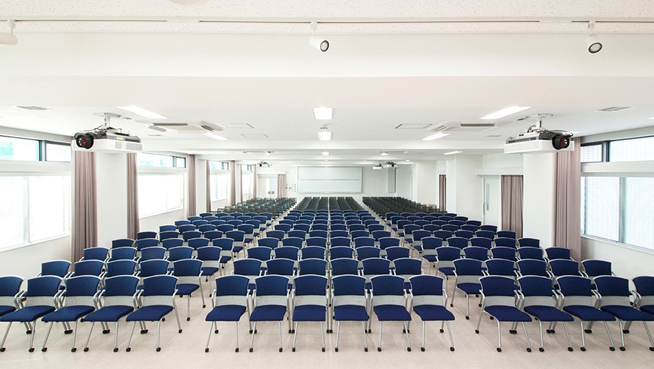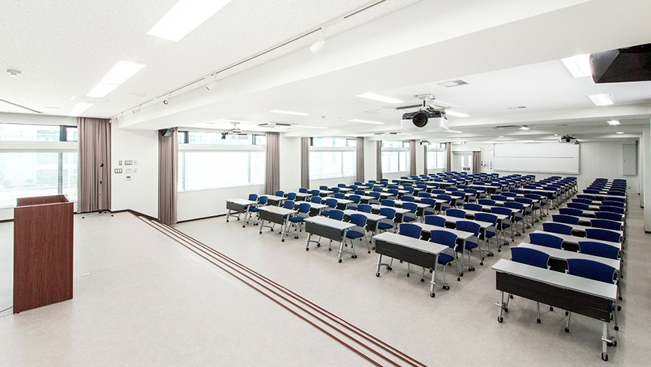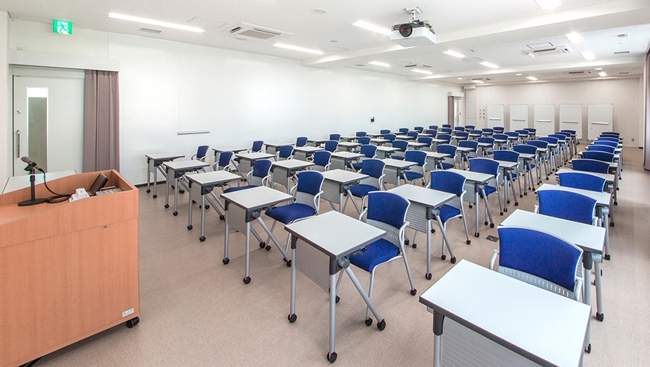 2階 大講義室/テーブル:CTZ、イス:ナビット、ルッシュ、演台:LST-PL25、ホワイトボード、LUSH台車
