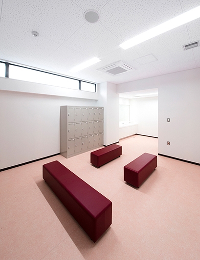 1階 男子更衣室・女子更衣室/スツール:ジェリースティック、ロッカー、シューズロッカー、傘立て