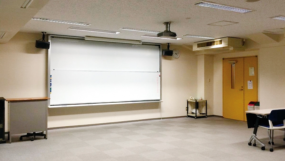 以前、視聴覚教室であった場所を、生徒が外国語を実践的に学ぶ「ランゲージスクエア」へ改修。2020年より実施される「読む」「書く」「聞く」「話す」の4技能を測る大学入試に対応するため、放課後はネイティブの教員を常駐させ、生徒の英語コミュニケーション能力の向上を図ります。廊下側の壁は、中の様子が見えるように腰より上部をガラス張りに施工して、開かれたスペースへと変化させました。さらに、内装をカラフルにすることで明るく賑やかな雰囲気を演出し、生徒が楽しくアクティブに学習できるように促しています。