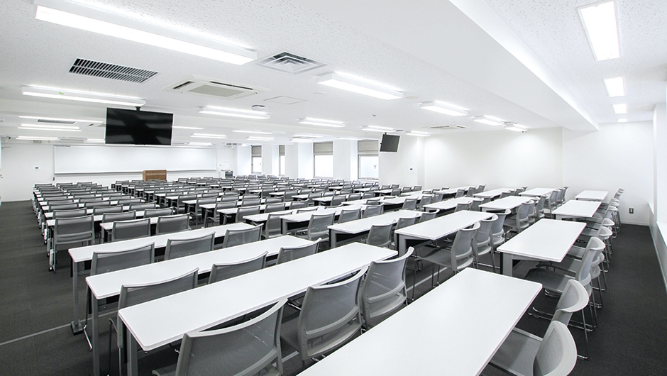 大教室/イス:ティーポ、移動デスク:CTZ、固定デスク特注品