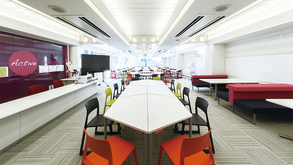 清優館 2階 学生ラウンジ/イス:デューン、テーブル:DT-15