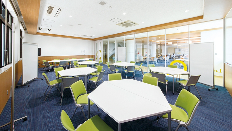 清優館 2階 ラーニング&リサーチコモンズ/イス:デューン、テーブル:DT-15、ホワイトボード