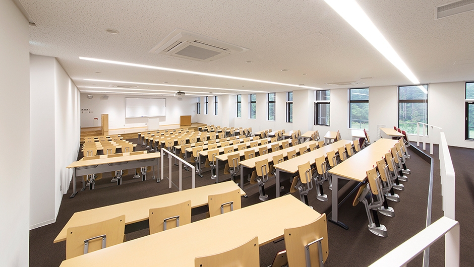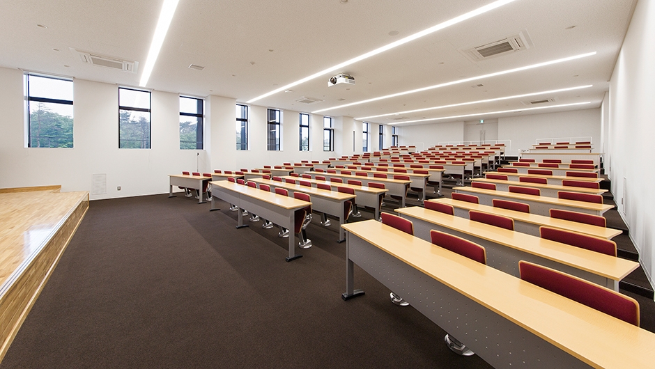2階 大講義室/講義デスク・イス:SCF-5505特注品 固定席147席・車椅子席3席 総席数150席