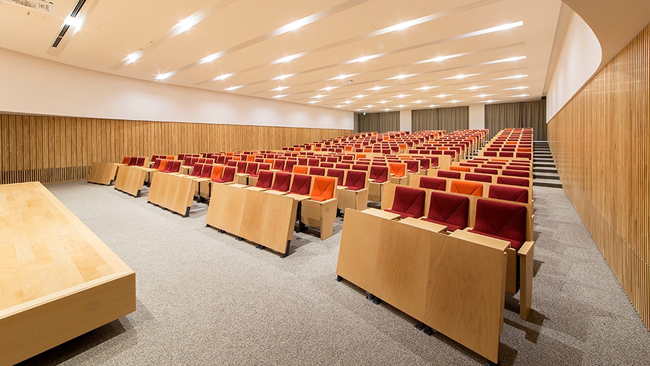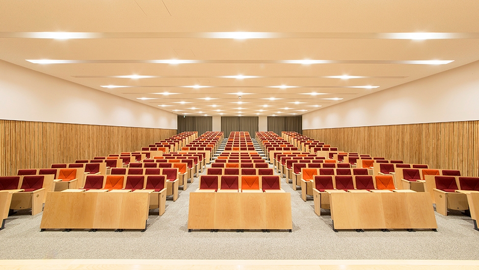 中部大学開学50周年を記念して建設され、2015年4月オープンしました。建学の精神「「不言実行、あてになる人間」への思いが込められ、学生が自ら学び、人間力を高める場となることを目指しています。1階アクティブホールは、授業だけでなく講演会やシンポジウムなどが開催できる多目的ホールとして利用されます。