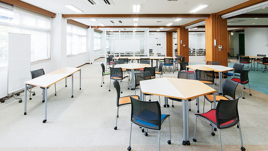 学生が自由に利用できるグローバル・コモンズスペース、間仕切りで仕切られたグループスタディルーム、アメニティゾーン、ウェブブラウジングコーナーなど目的別のフロアゾーニングにより、共同学習をサポート。各所にキャスター付のイスやテーブル、ホワイトボードを備えているため、人数や用途に合わせて自由に動かすなどして学生の自発的な学習を深めていくことができます。