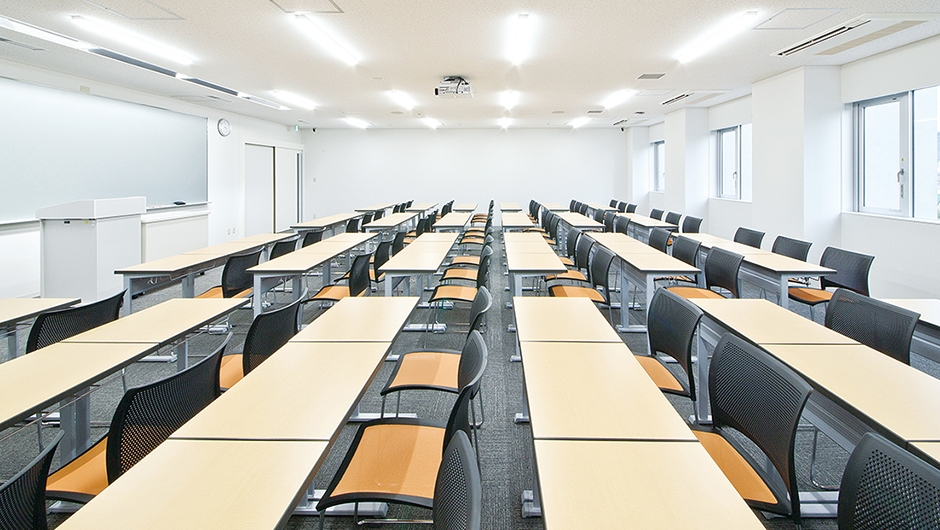 3階 A308講義室/講義デスク・イス:SCF-PF-5505-7特注品、移動イス:SCM-5505、移動机: CTN4特注品 固定席250席・移動席6席