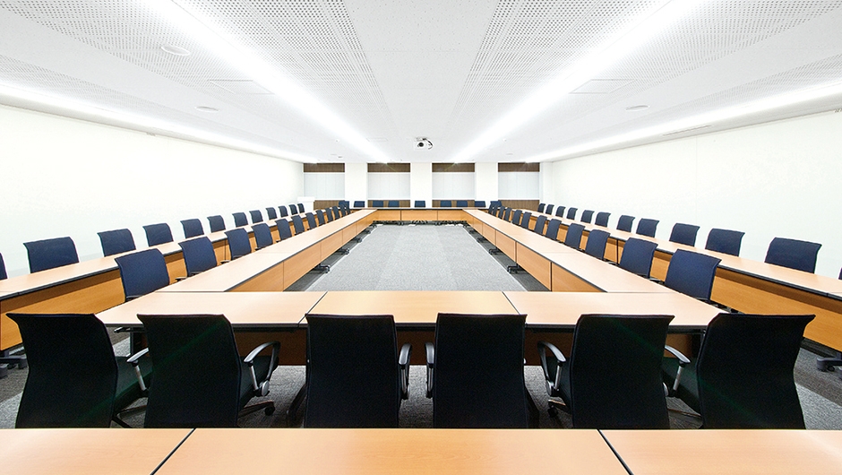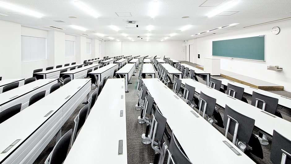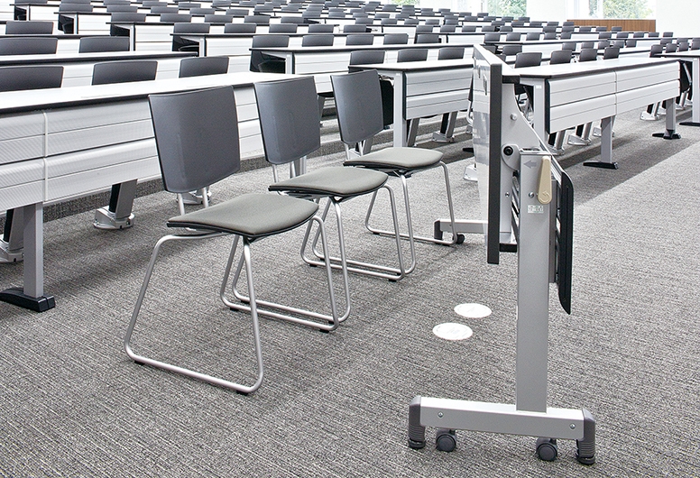1階 A106講義室/講義デスク・イス:SCF-5505-7、移動イス:SCM-5505、移動机:CTN4特注品 固定席250席・移動席6席