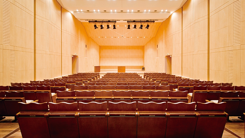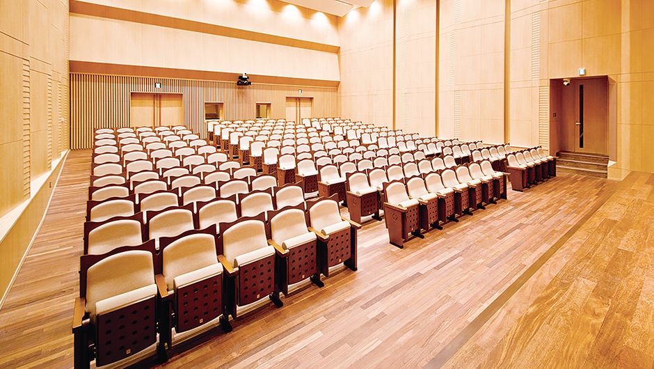 N1棟 1階 音楽ホール「リリー・ハーモニー」/ホール客席:ATS-1341BTA特注品 199席、演台:LST、司会者台:EST