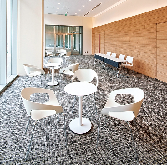 N1棟 1階 ホワイエ/イス、テーブル:特注品、イス:ティーポ、テーブル:CTZ