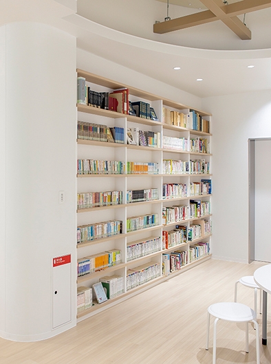 3階 Port S/丸イス、テーブル:DT-15特注品、書架:特注品