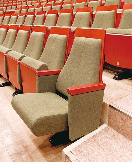 客席は金属製の脚部を残し、老朽化した背、座、肘掛けをリニューアルしました。