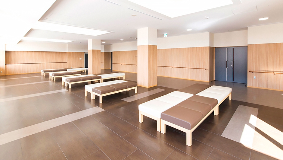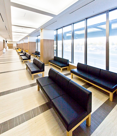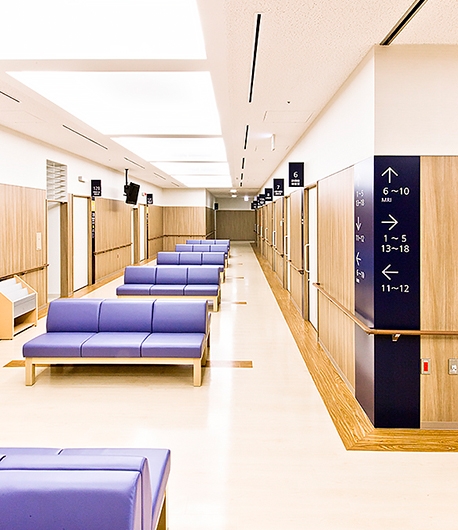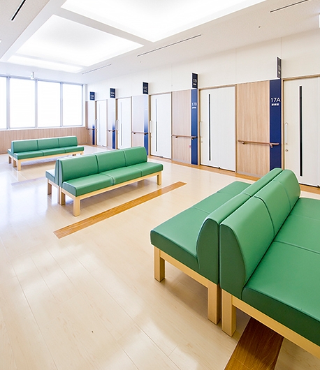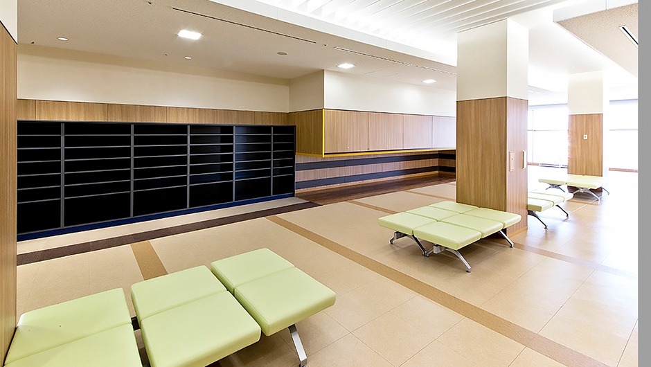 総合的な健康づくりの拠点として、また、休日・平日夜間の急病診療施設として、春日井市民病院敷地内に建設されました。各階の待合ホールなどに設置したベンチの座裏には、消臭やVOCの吸着や分解をする機能を持つ特殊なボードを使用し、衛生管理に配慮しています。