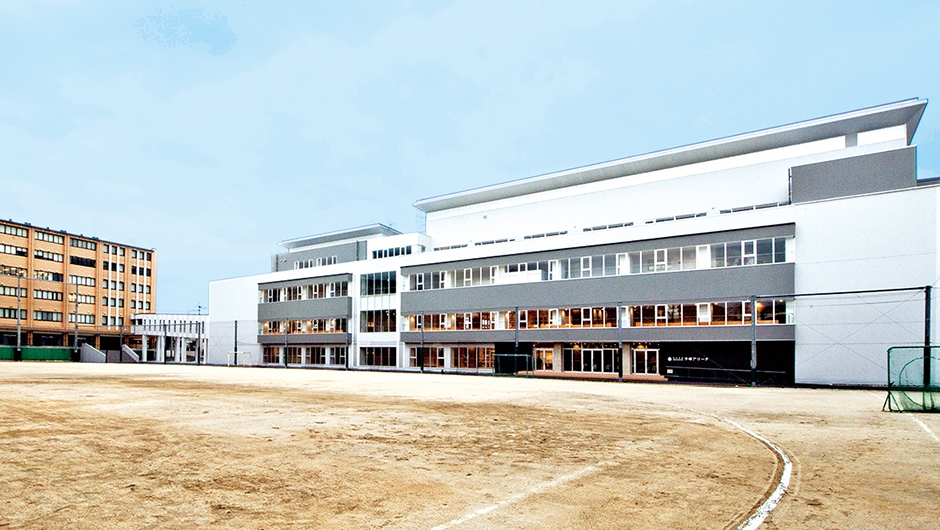 専門学校、高等学校と7園ある幼稚園グループを運営する学校法人 博多学園は、創立70周年を機に70種におよぶブランディングプロジェクトを進めています。その中核となるのが新キャンパスの整備である。2012年4月に本館となる校舎を改修し、2014年1月には千早アリーナがオープンしました。