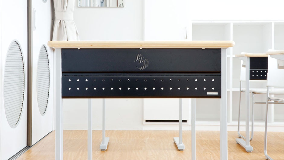 学校法人佐賀清和学園は、2014年の校舎移転に伴い新校舎を建設。 普通教室の机は学校独自の特徴を持たせるため、幕板に学園のマークをパンチング加工でデザインしています。学習スペースは職員室の正面にあるため、自習などの利用の他に相談に来た生徒とのコミュニケーションの場としても利用されています。