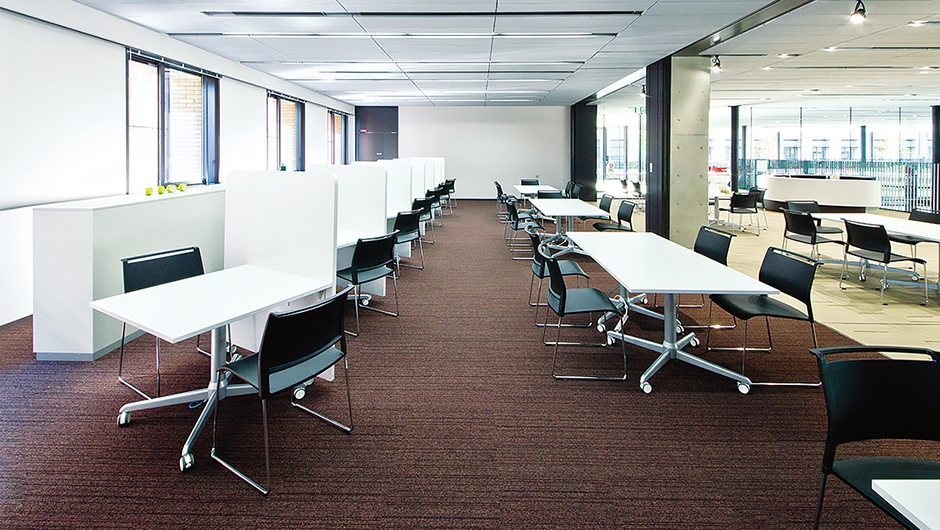 1F 学生ラウンジ/イス:ティーポ、テーブル:DT-TU特注品
