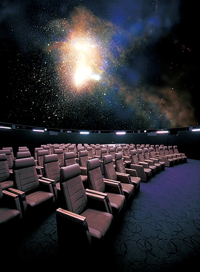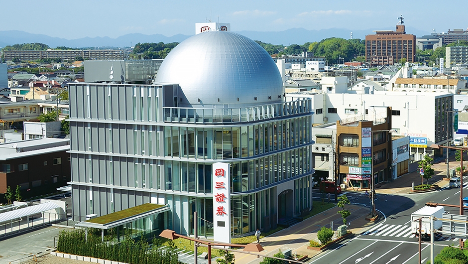 岡三証券グループは、創業90周年記念事業の一環として、創業地・三重県津市に津ビルを新築し、子どもたちの科学への関心を高め地域の科学教育に貢献する目的で、最上階にデジタルドームシアター「神楽洞夢」を開設しました。ドームは最新の天文データと上映システムを備え、迫力ある映像が再現できるほか、お客様への投資情報のプレゼンテーションにも使用されます。