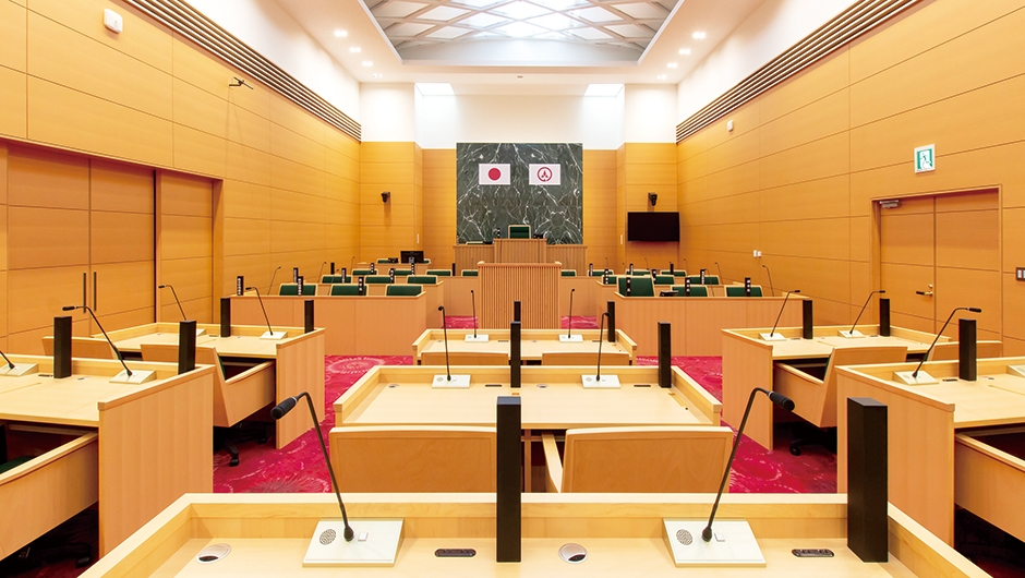 議場〈1〉/議場イス:RC2100W、議場机、その他議場家具一式