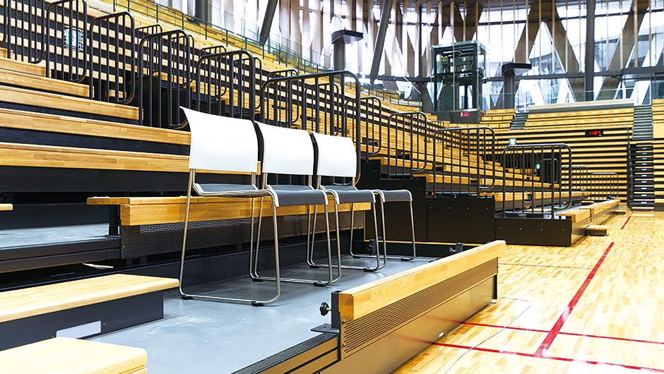 メインアリーナ/移動観覧席「テレスコープスタンド」:AHB-A5200特注品 2436席(総席数4012席)