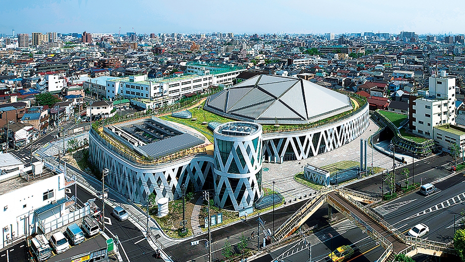 2012年に開館した大田区総合体育館は、京急蒲田駅から近く、第一京浜国道に面するという好立地にあります。狭い敷地に、プロスポーツ興行や公式大会などを催すメインアリーナと、区民利用に適したサブアリーナを持ちます。メインアリーナでは、プロスポーツ興行以外に市民スポーツなども行ないます。観客席の配置にはフレキシブルな対応が求められるため、固定席の他に移動できる観覧席が設置されました。